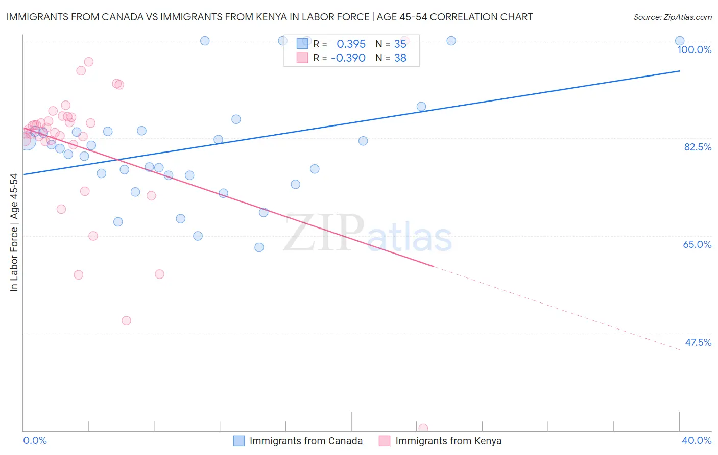 Immigrants from Canada vs Immigrants from Kenya In Labor Force | Age 45-54 Correlation Chart
