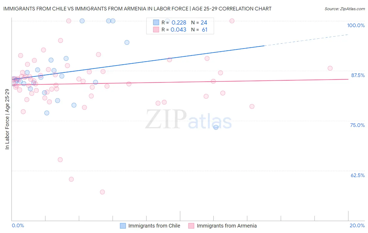 Immigrants from Chile vs Immigrants from Armenia In Labor Force | Age 25-29