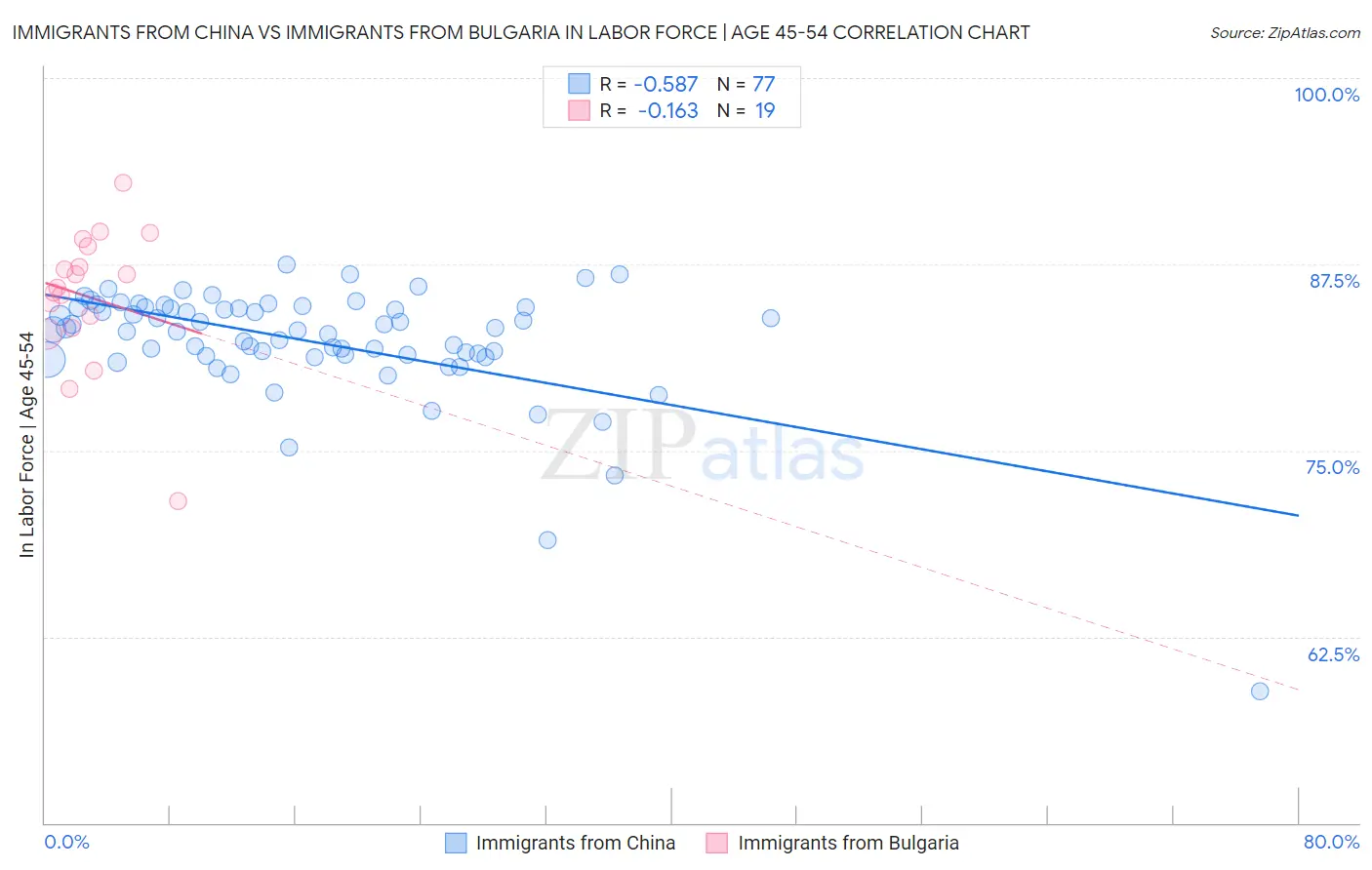 Immigrants from China vs Immigrants from Bulgaria In Labor Force | Age 45-54 Correlation Chart