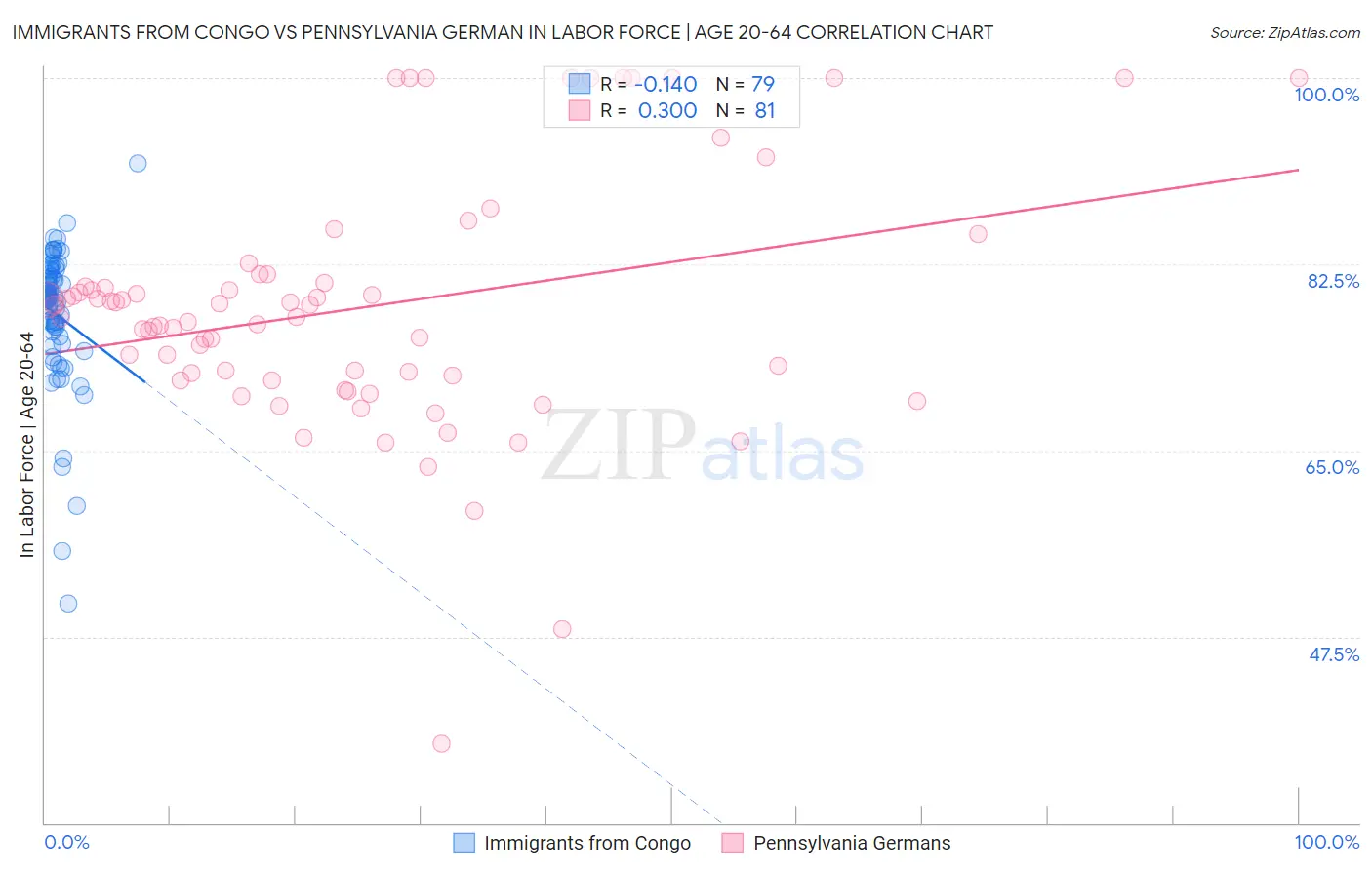 Immigrants from Congo vs Pennsylvania German In Labor Force | Age 20-64 Correlation Chart