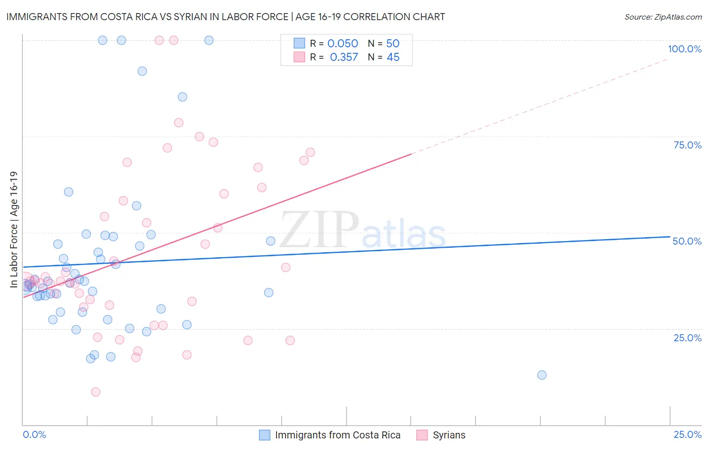 Immigrants from Costa Rica vs Syrian In Labor Force | Age 16-19 Correlation Chart