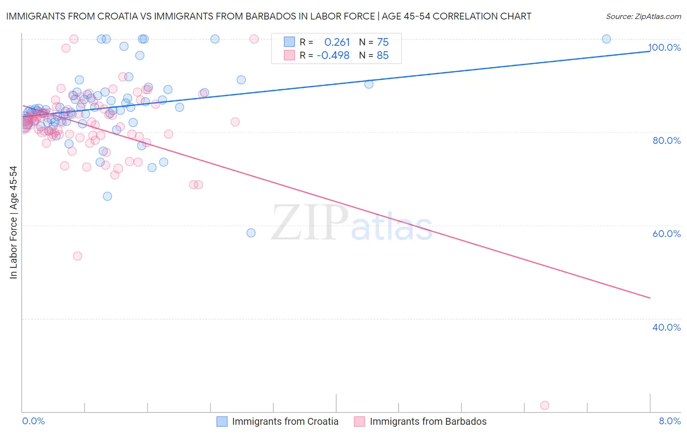 Immigrants from Croatia vs Immigrants from Barbados In Labor Force | Age 45-54 Correlation Chart