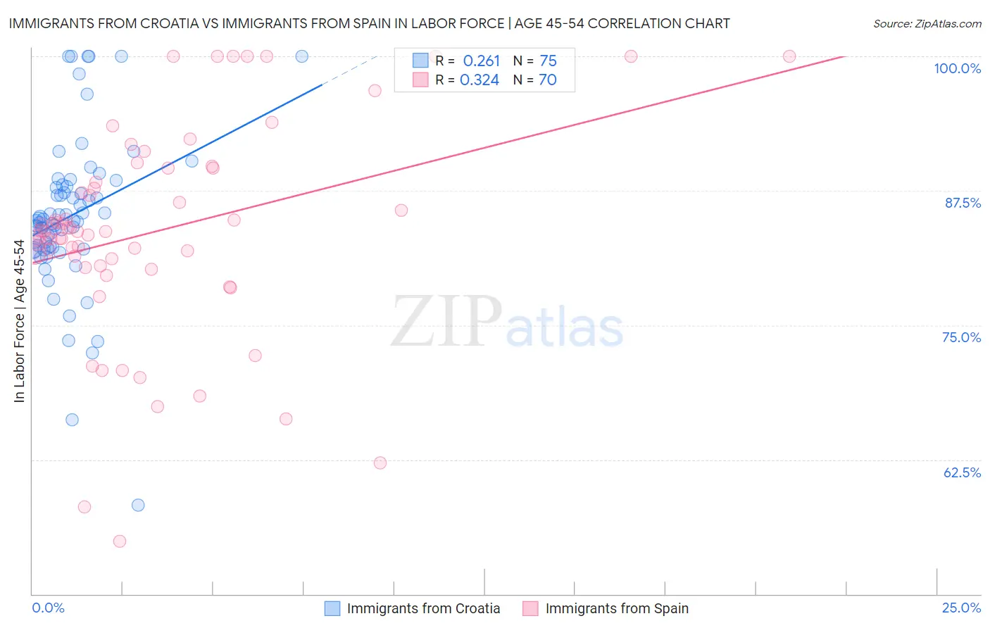 Immigrants from Croatia vs Immigrants from Spain In Labor Force | Age 45-54 Correlation Chart