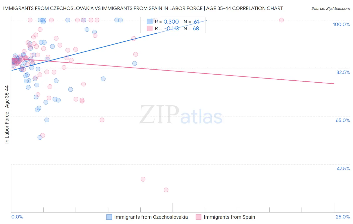 Immigrants from Czechoslovakia vs Immigrants from Spain In Labor Force | Age 35-44 Correlation Chart