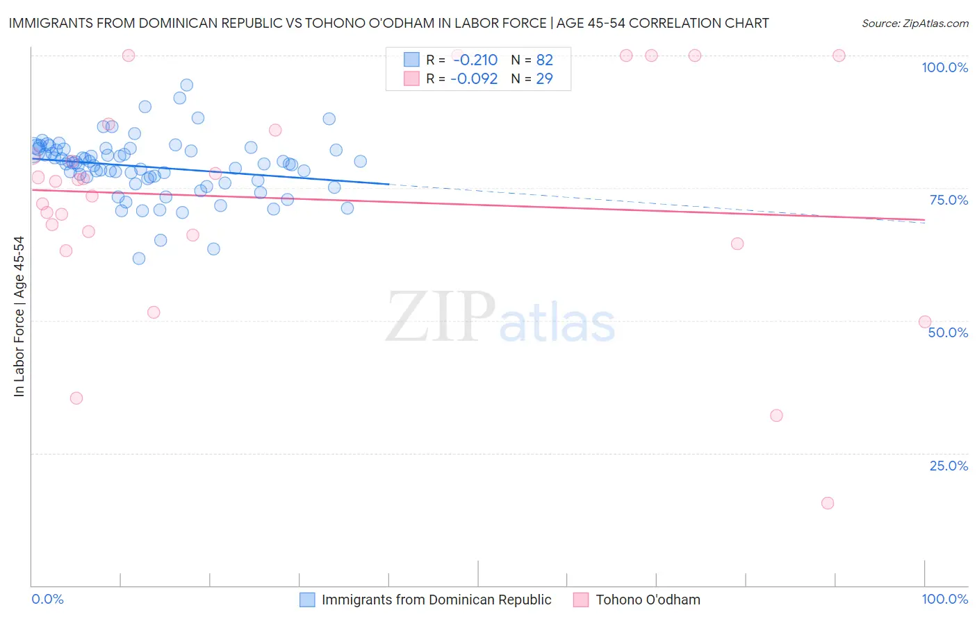 Immigrants from Dominican Republic vs Tohono O'odham In Labor Force | Age 45-54 Correlation Chart