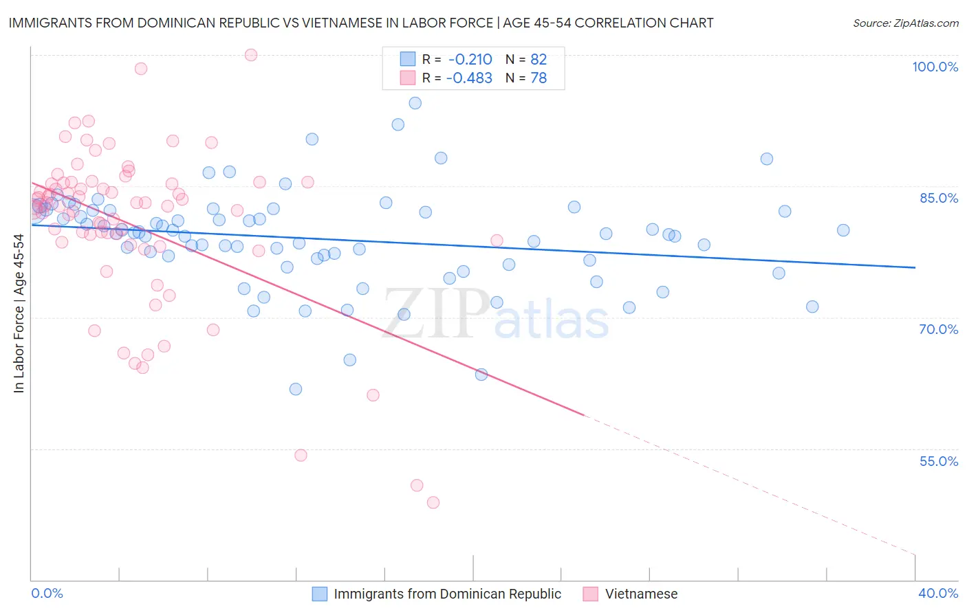 Immigrants from Dominican Republic vs Vietnamese In Labor Force | Age 45-54 Correlation Chart