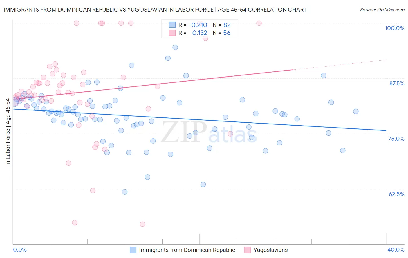 Immigrants from Dominican Republic vs Yugoslavian In Labor Force | Age 45-54 Correlation Chart