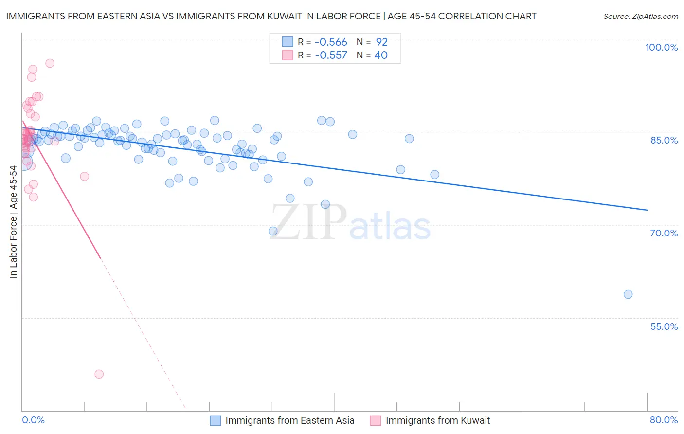 Immigrants from Eastern Asia vs Immigrants from Kuwait In Labor Force | Age 45-54 Correlation Chart