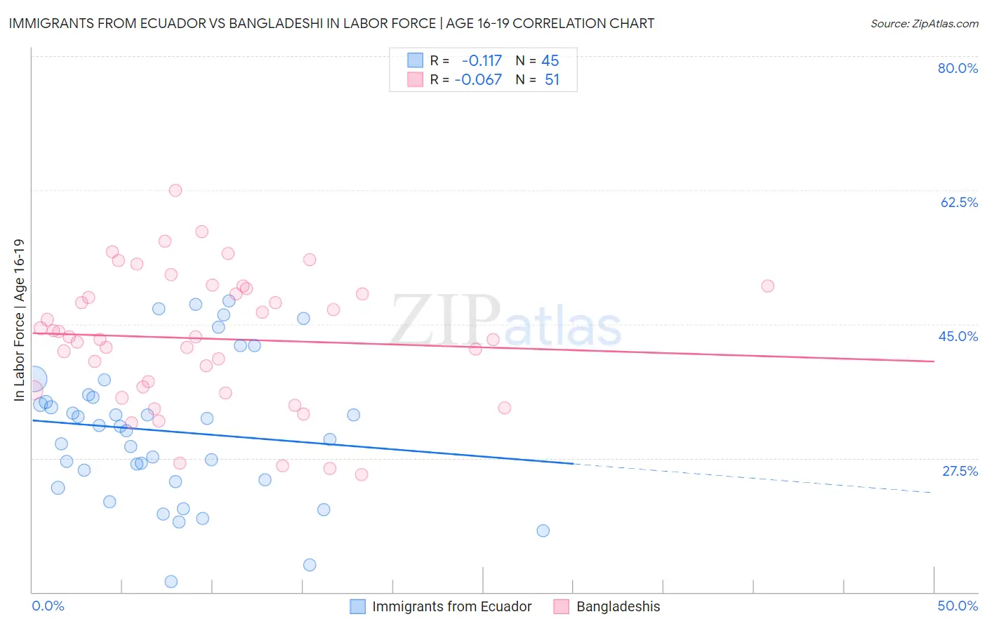 Immigrants from Ecuador vs Bangladeshi In Labor Force | Age 16-19 Correlation Chart