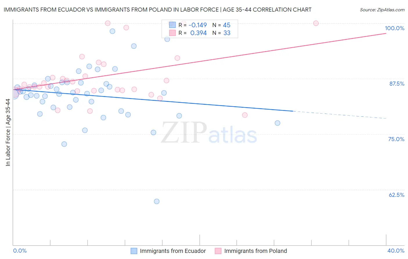 Immigrants from Ecuador vs Immigrants from Poland In Labor Force | Age 35-44 Correlation Chart