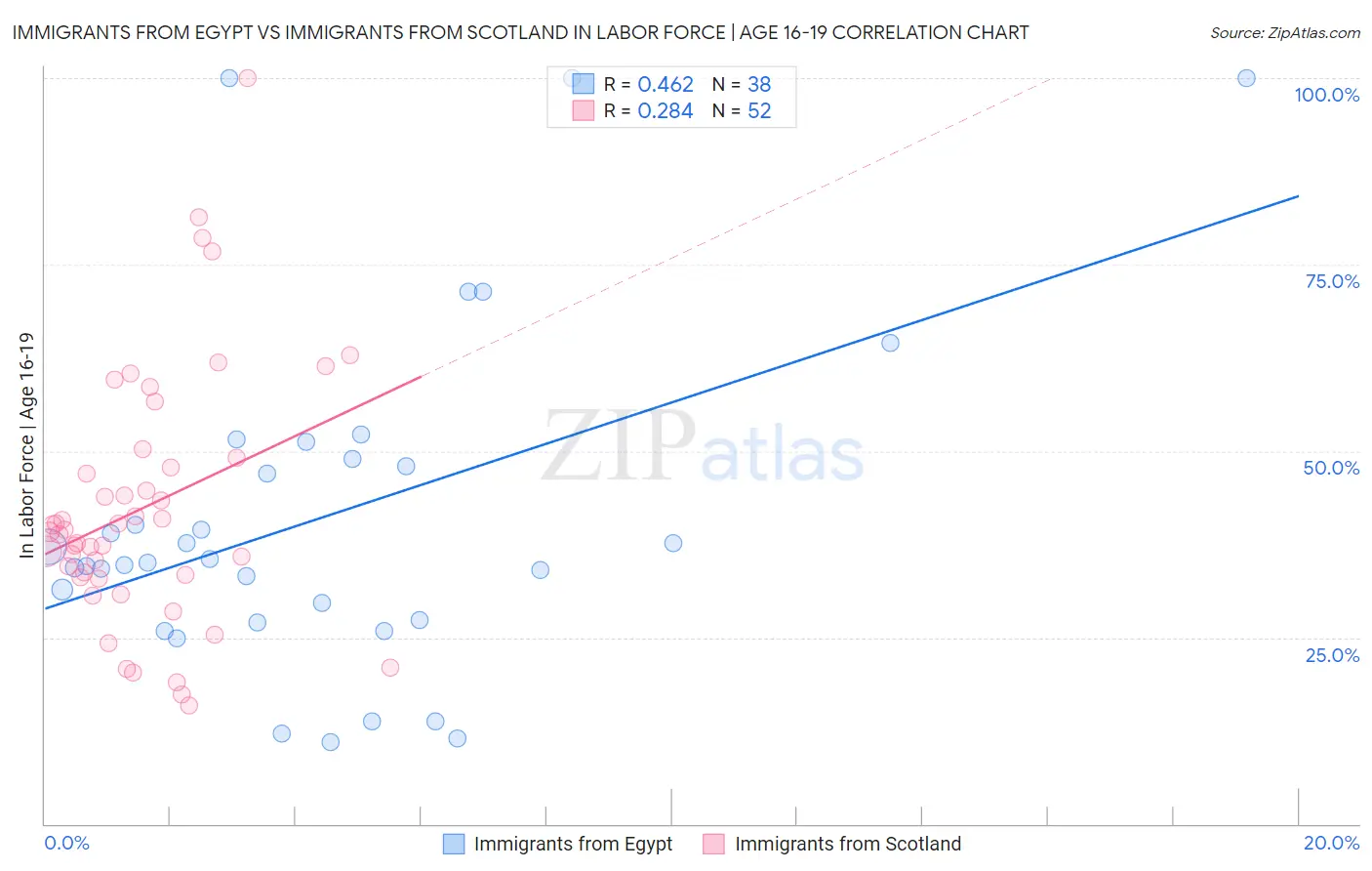 Immigrants from Egypt vs Immigrants from Scotland In Labor Force | Age 16-19 Correlation Chart