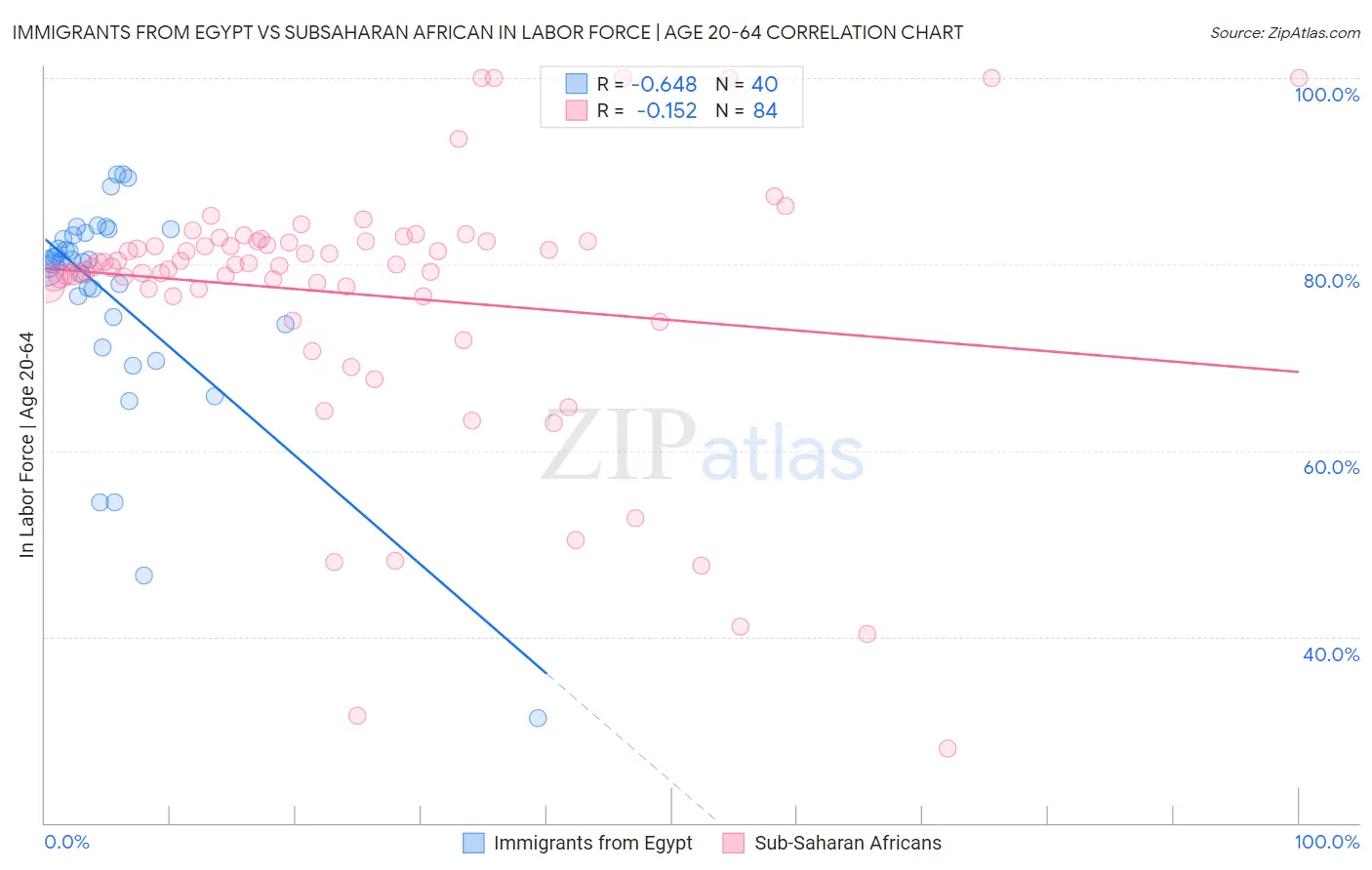 Immigrants from Egypt vs Subsaharan African In Labor Force | Age 20-64 Correlation Chart