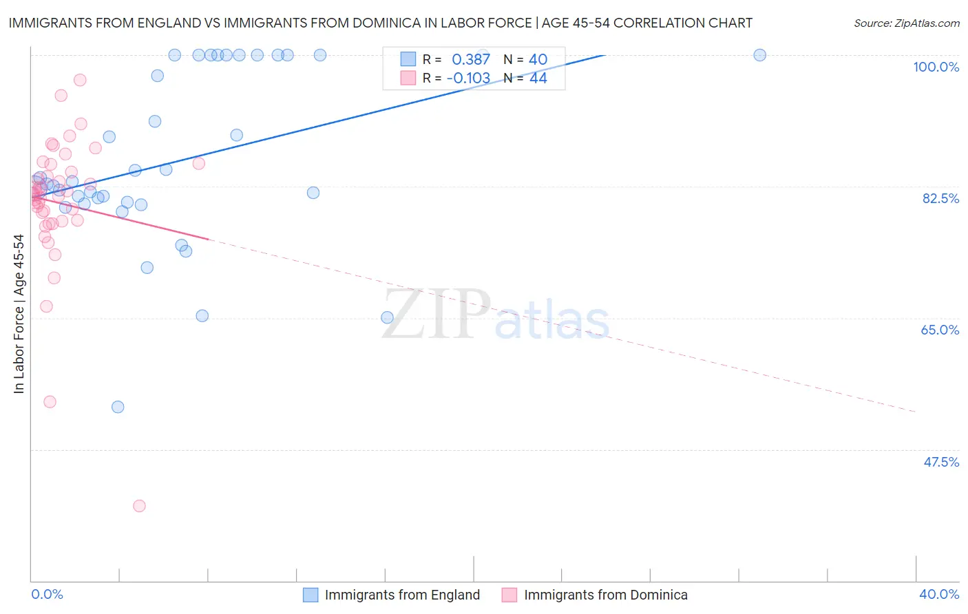 Immigrants from England vs Immigrants from Dominica In Labor Force | Age 45-54 Correlation Chart