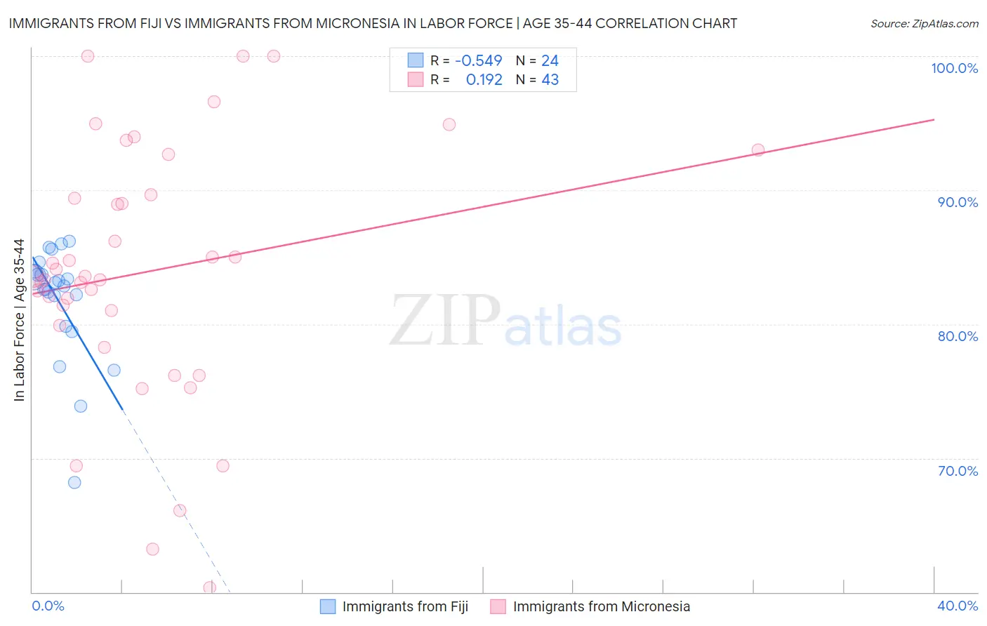 Immigrants from Fiji vs Immigrants from Micronesia In Labor Force | Age 35-44 Correlation Chart