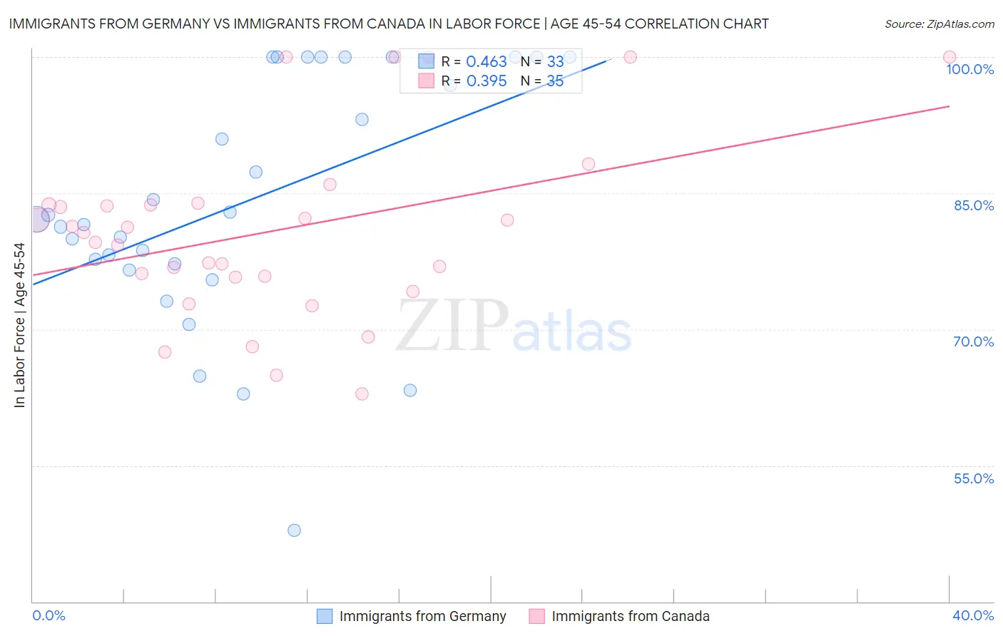 Immigrants from Germany vs Immigrants from Canada In Labor Force | Age 45-54 Correlation Chart