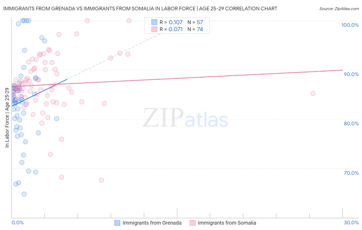 Immigrants from Grenada vs Immigrants from Somalia In Labor Force | Age 25-29 Correlation Chart