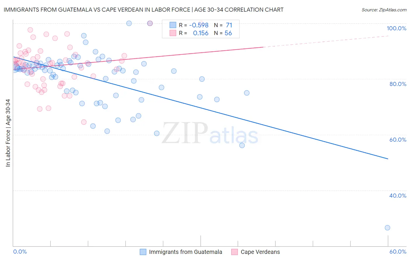 Immigrants from Guatemala vs Cape Verdean In Labor Force | Age 30-34 Correlation Chart