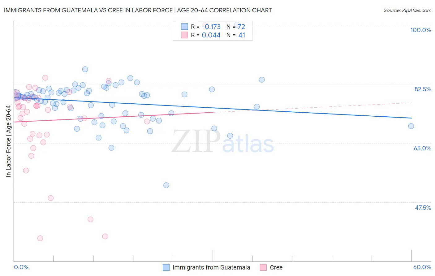 Immigrants from Guatemala vs Cree In Labor Force | Age 20-64 Correlation Chart
