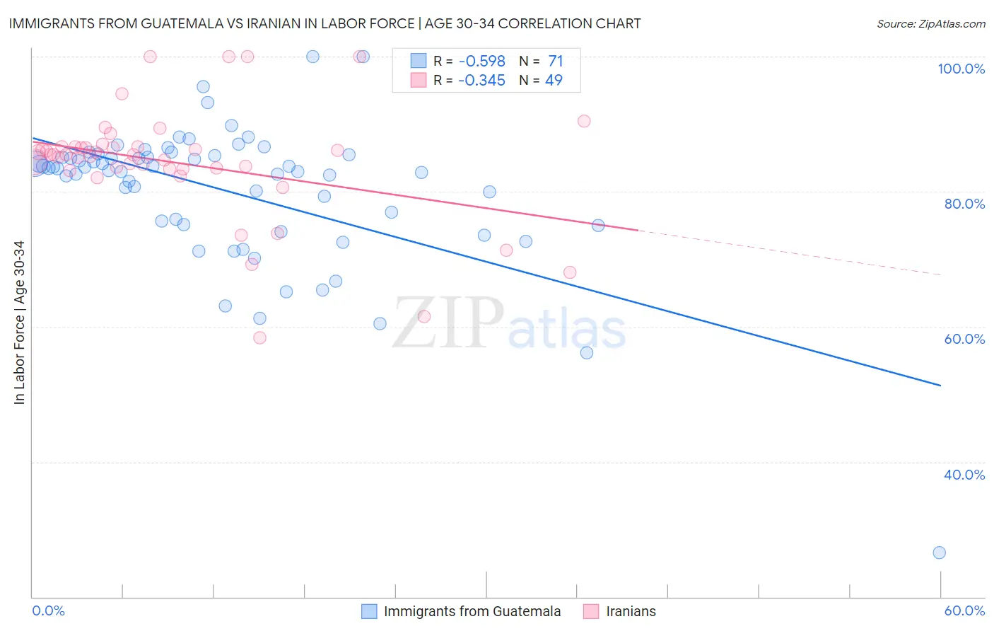 Immigrants from Guatemala vs Iranian In Labor Force | Age 30-34 Correlation Chart