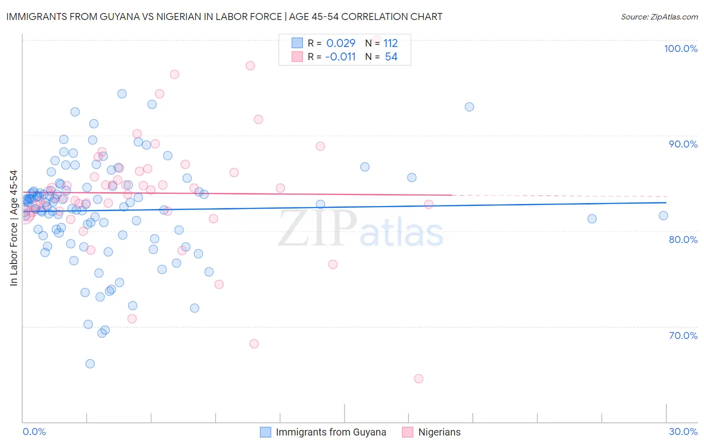Immigrants from Guyana vs Nigerian In Labor Force | Age 45-54 Correlation Chart