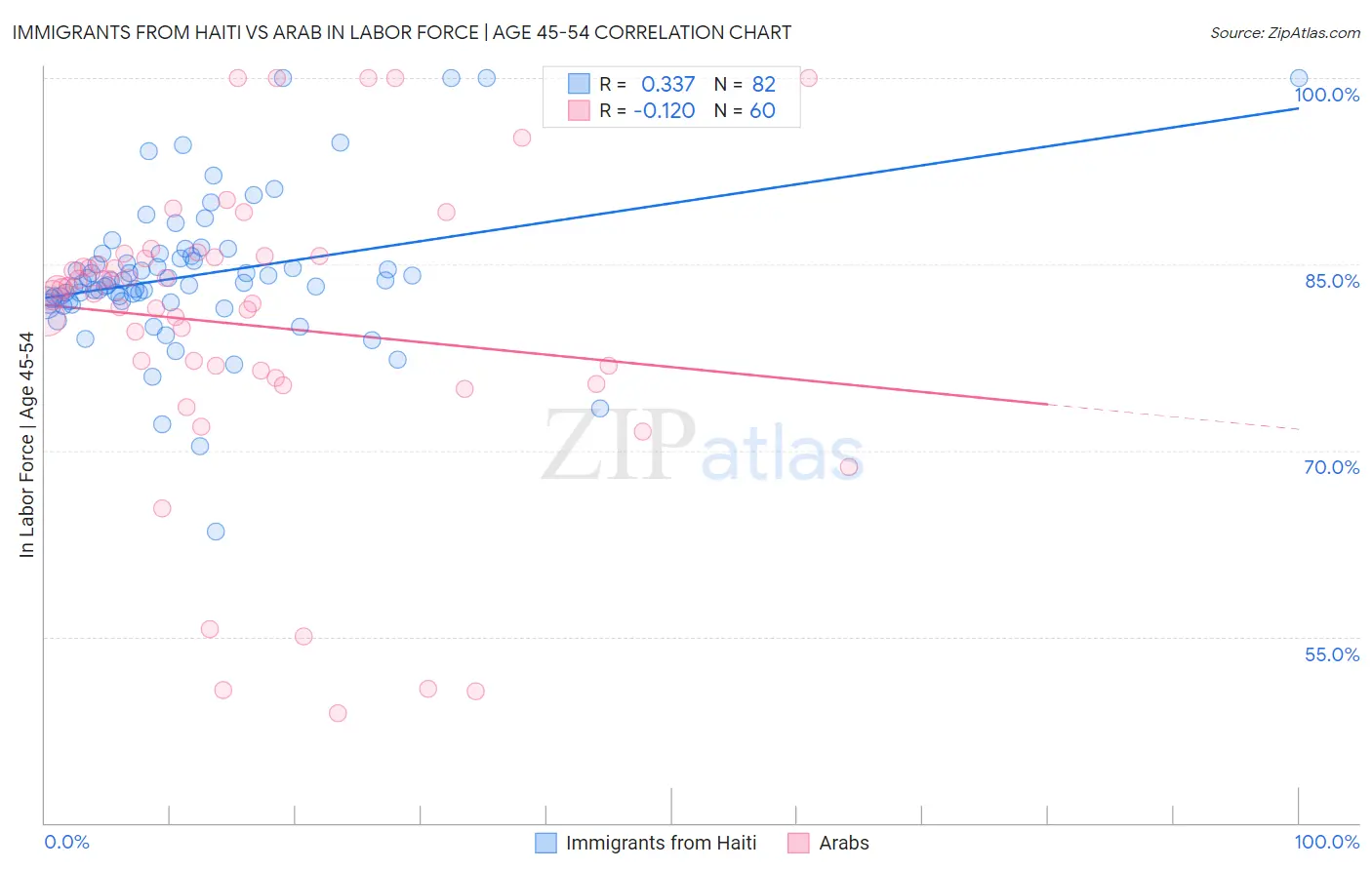 Immigrants from Haiti vs Arab In Labor Force | Age 45-54 Correlation Chart