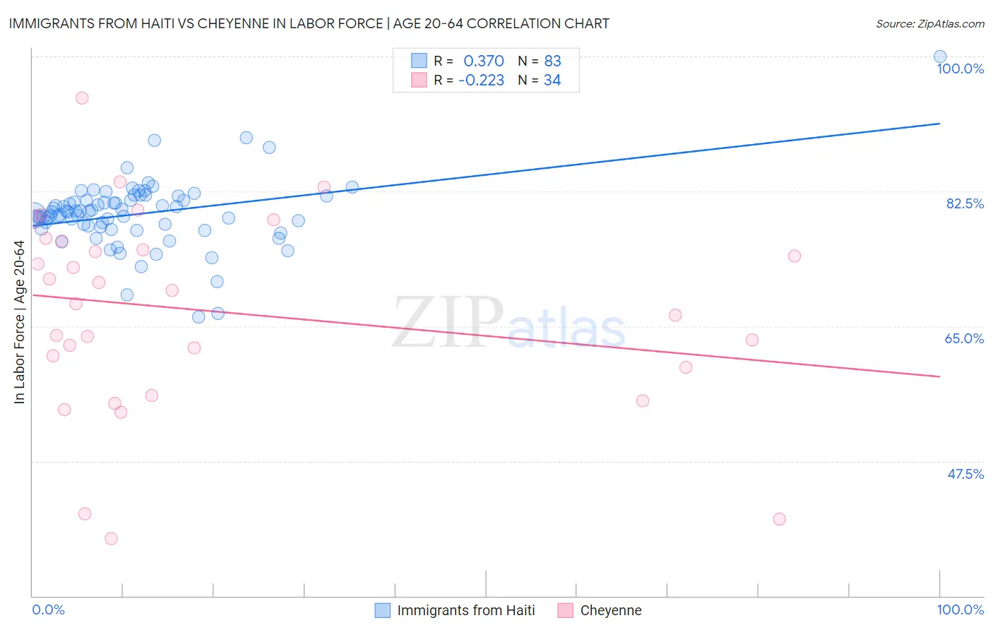 Immigrants from Haiti vs Cheyenne In Labor Force | Age 20-64 Correlation Chart