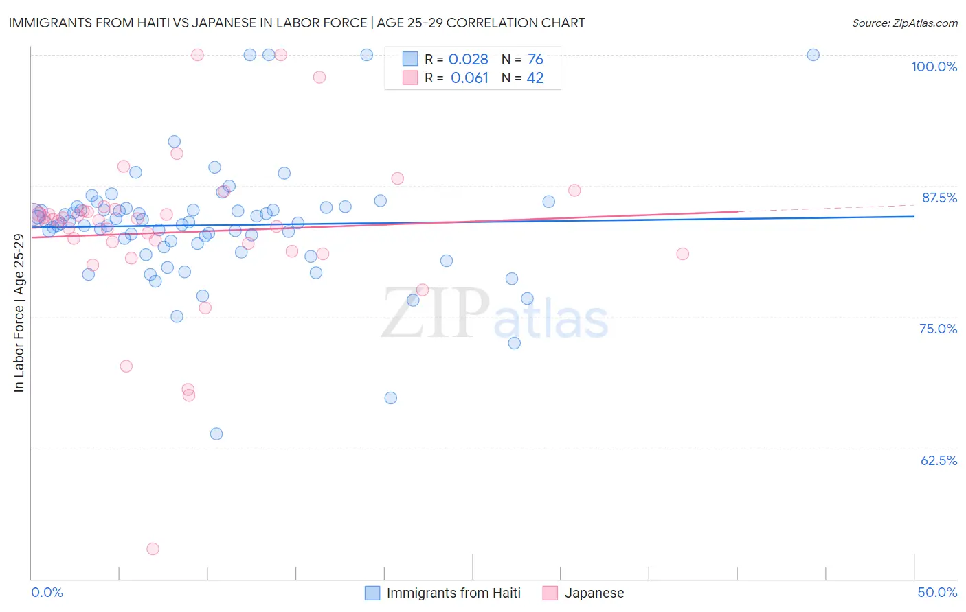 Immigrants from Haiti vs Japanese In Labor Force | Age 25-29 Correlation Chart