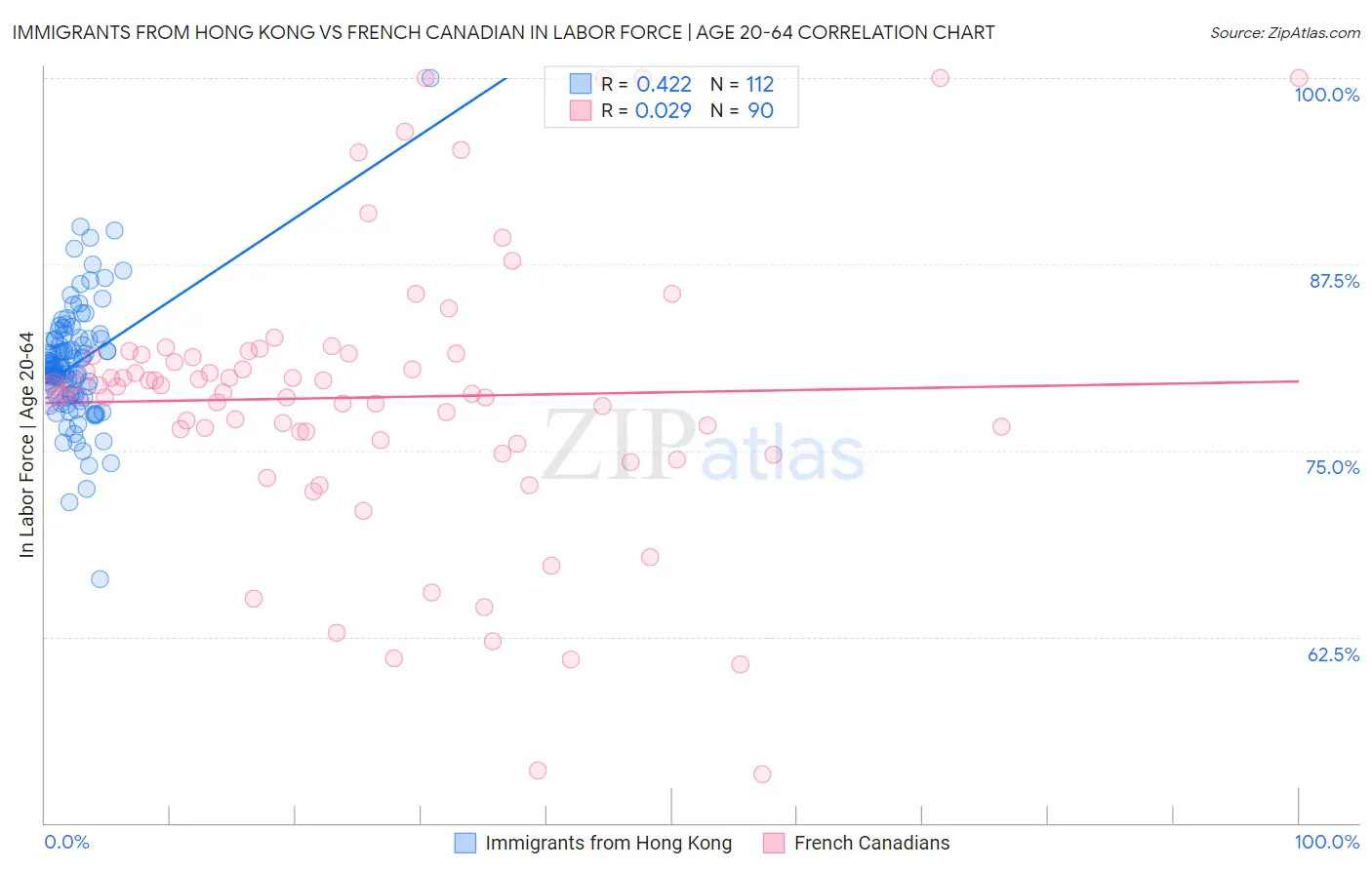 Immigrants from Hong Kong vs French Canadian In Labor Force | Age 20-64 Correlation Chart