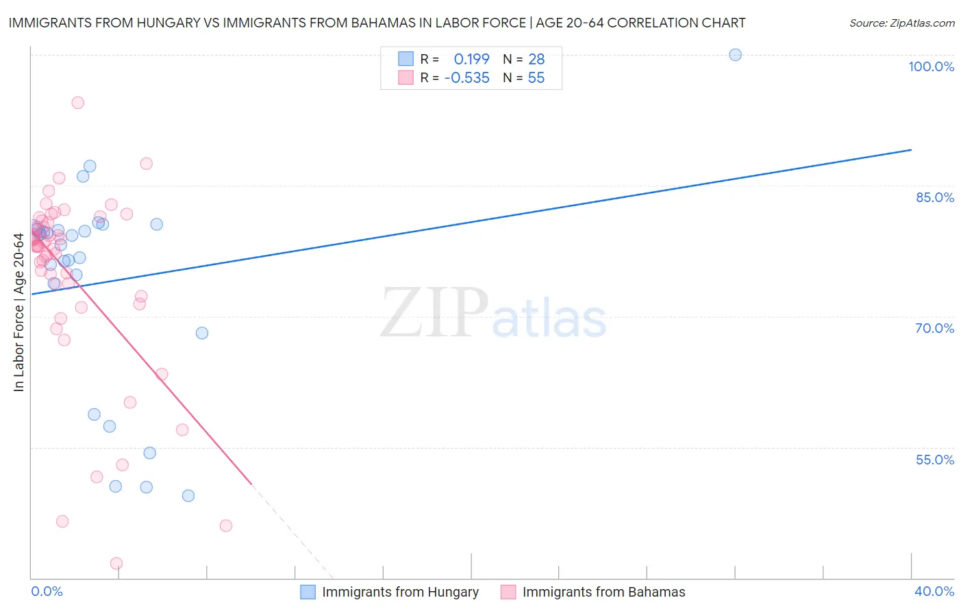 Immigrants from Hungary vs Immigrants from Bahamas In Labor Force | Age 20-64 Correlation Chart
