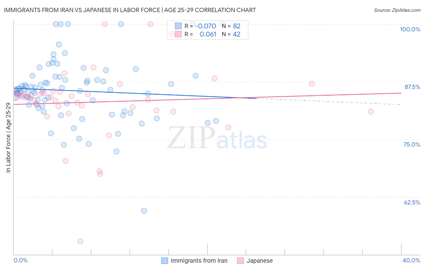 Immigrants from Iran vs Japanese In Labor Force | Age 25-29 Correlation Chart