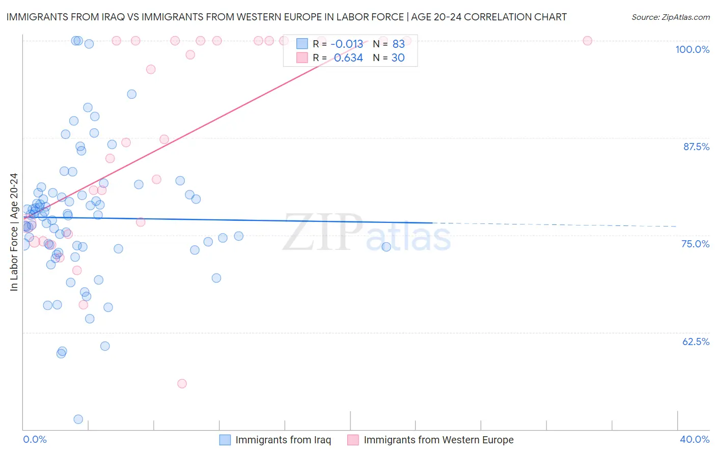 Immigrants from Iraq vs Immigrants from Western Europe In Labor Force | Age 20-24 Correlation Chart