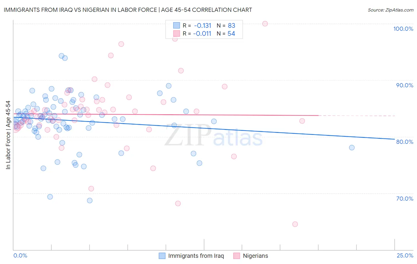 Immigrants from Iraq vs Nigerian In Labor Force | Age 45-54 Correlation Chart