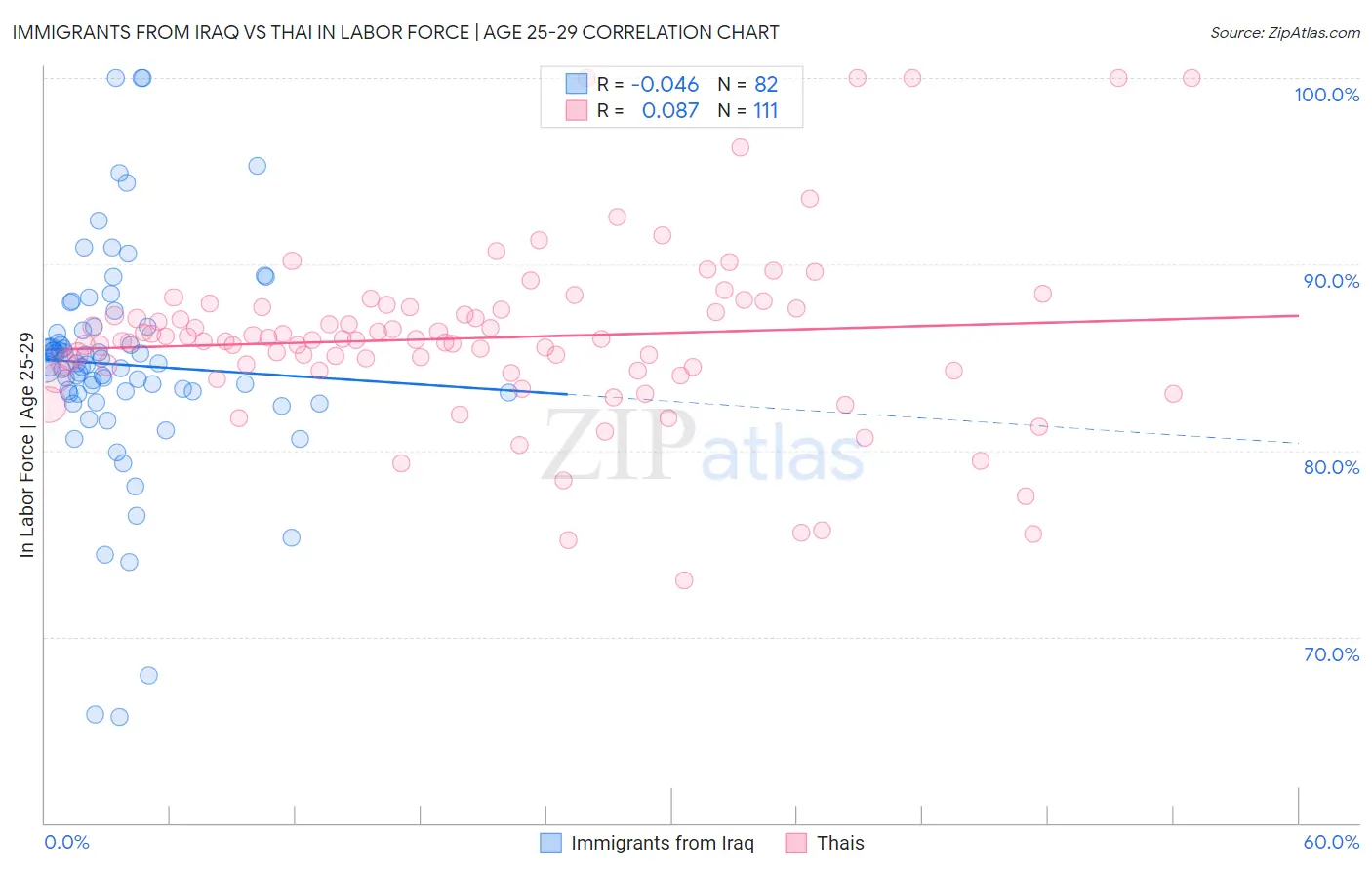 Immigrants from Iraq vs Thai In Labor Force | Age 25-29 Correlation Chart