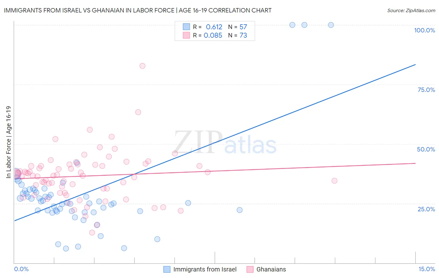 Immigrants from Israel vs Ghanaian In Labor Force | Age 16-19 Correlation Chart