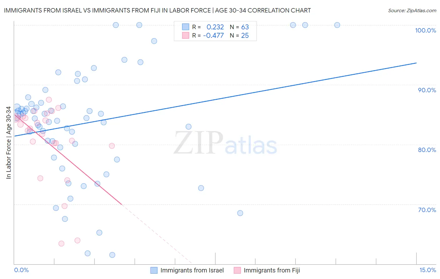 Immigrants from Israel vs Immigrants from Fiji In Labor Force | Age 30-34 Correlation Chart