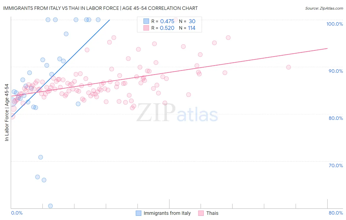 Immigrants from Italy vs Thai In Labor Force | Age 45-54 Correlation Chart