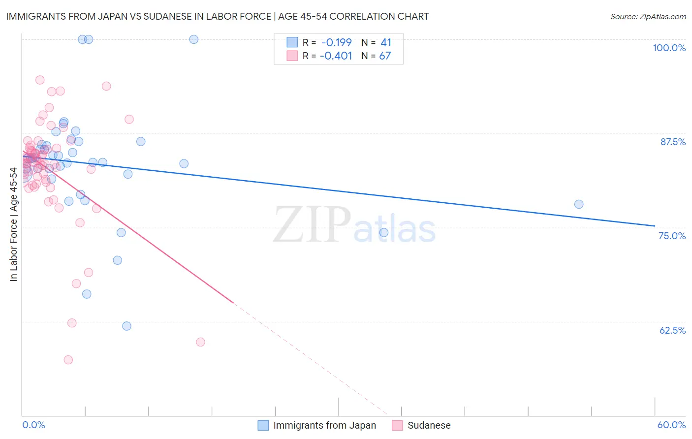 Immigrants from Japan vs Sudanese In Labor Force | Age 45-54 Correlation Chart