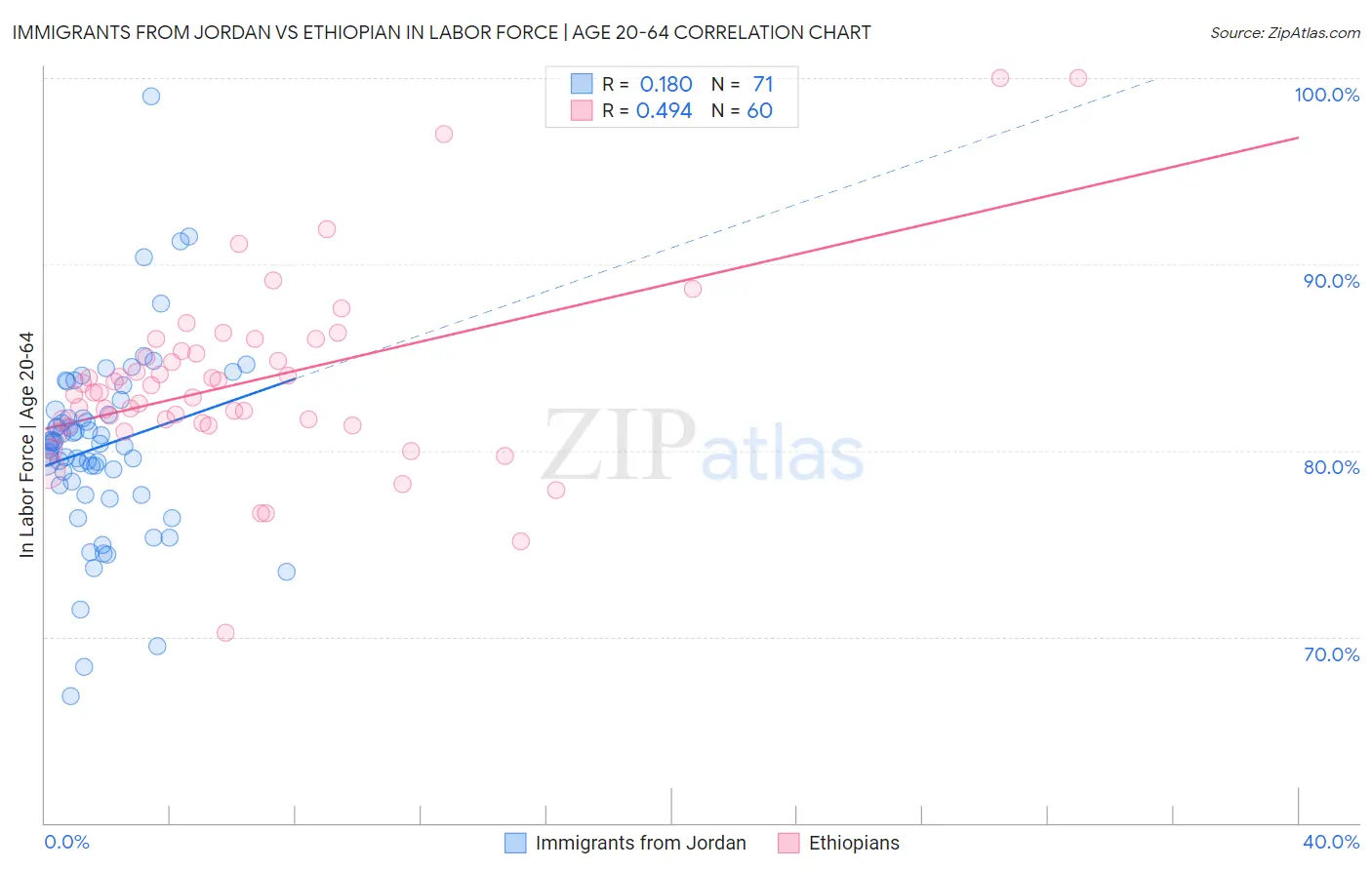 Immigrants from Jordan vs Ethiopian In Labor Force | Age 20-64 Correlation Chart