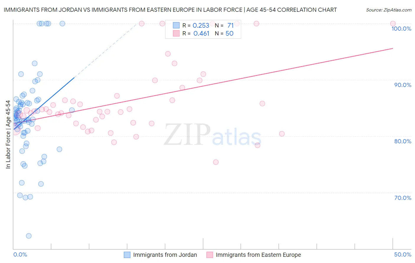 Immigrants from Jordan vs Immigrants from Eastern Europe In Labor Force | Age 45-54 Correlation Chart
