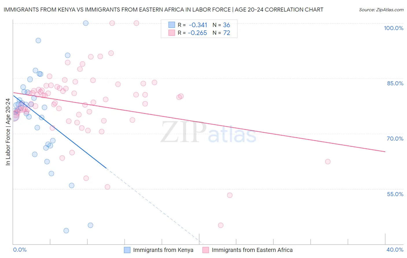 Immigrants from Kenya vs Immigrants from Eastern Africa In Labor Force | Age 20-24 Correlation Chart