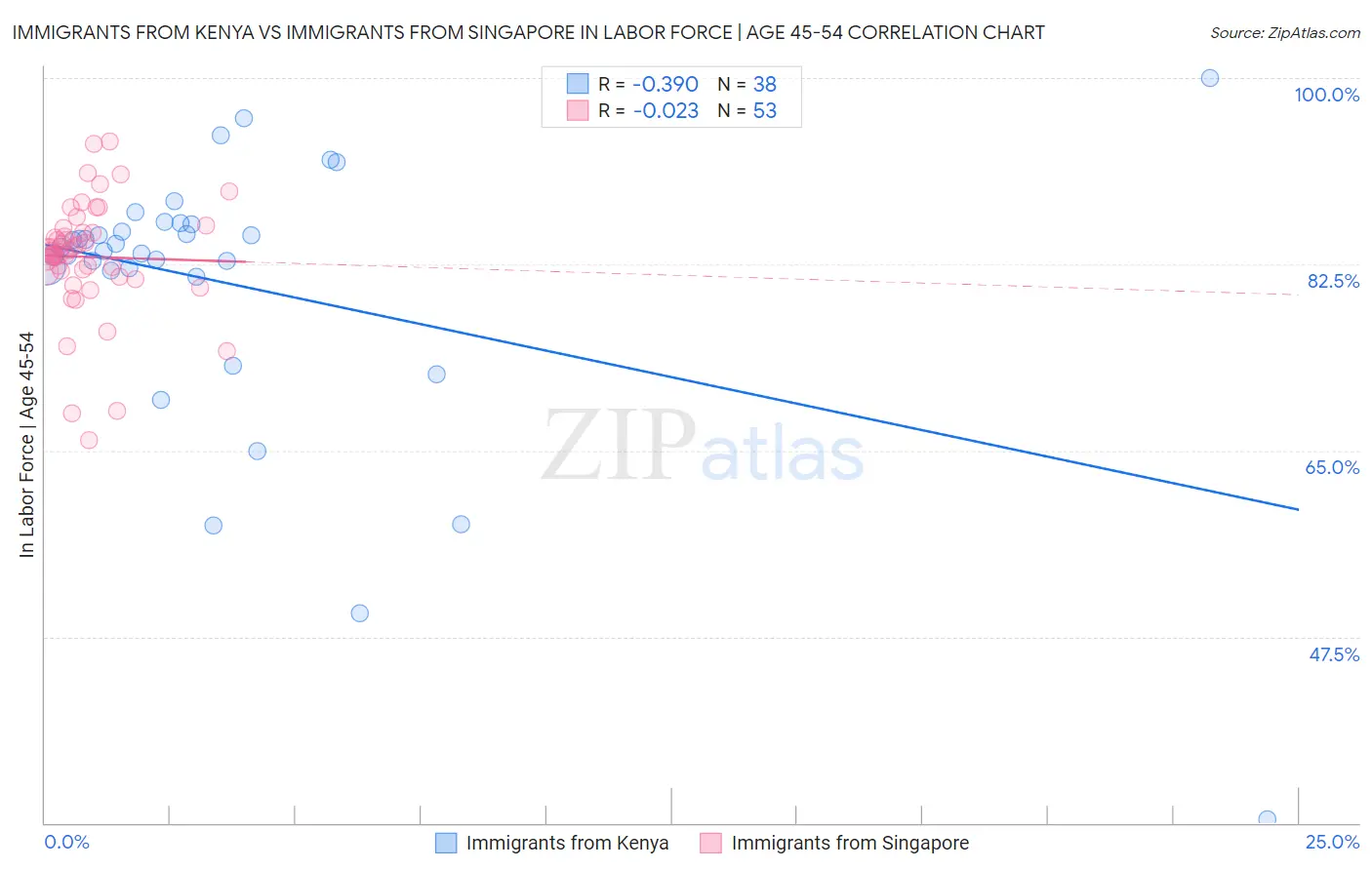Immigrants from Kenya vs Immigrants from Singapore In Labor Force | Age 45-54 Correlation Chart