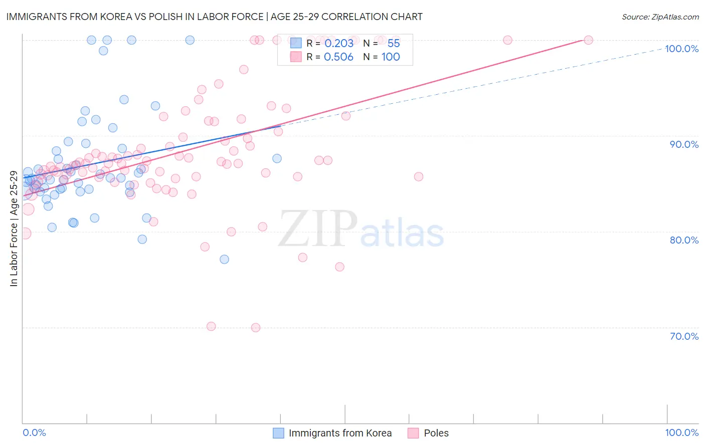 Immigrants from Korea vs Polish In Labor Force | Age 25-29 Correlation Chart