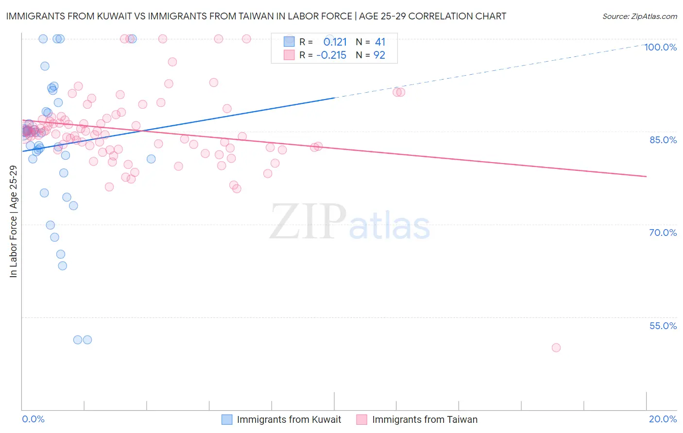 Immigrants from Kuwait vs Immigrants from Taiwan In Labor Force | Age 25-29 Correlation Chart