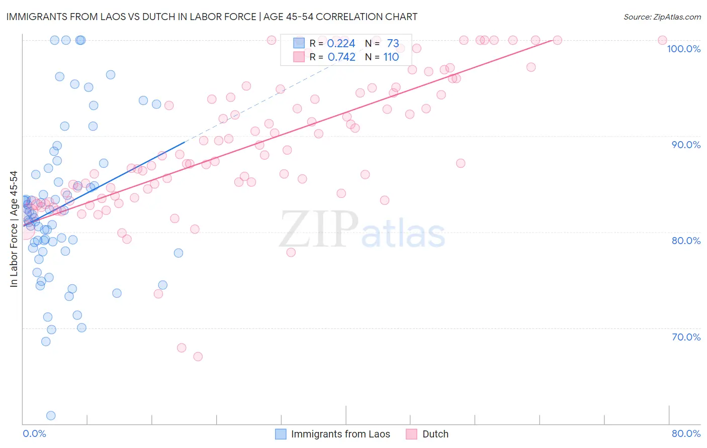 Immigrants from Laos vs Dutch In Labor Force | Age 45-54 Correlation Chart