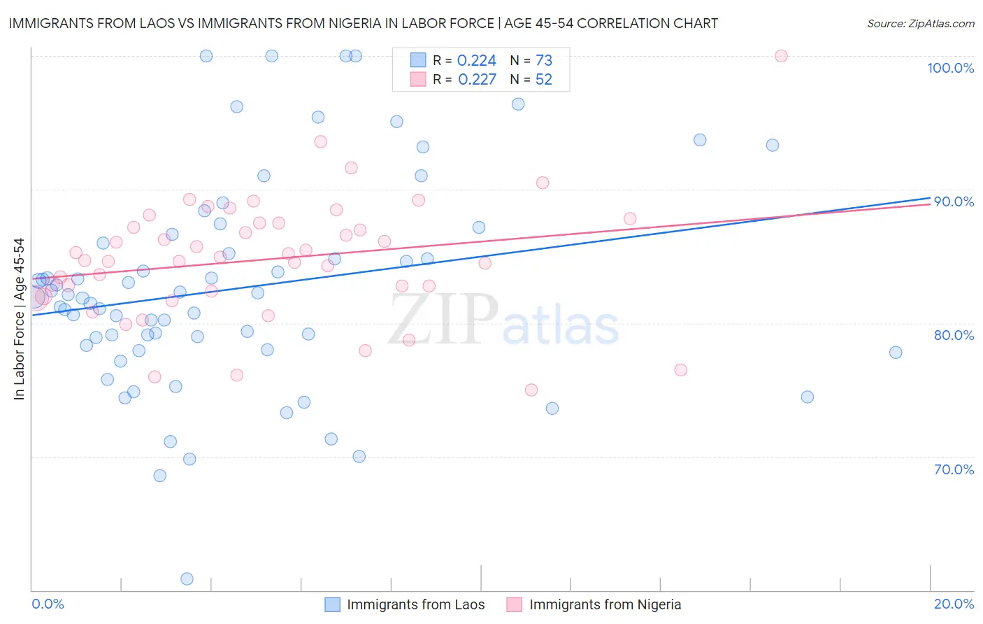Immigrants from Laos vs Immigrants from Nigeria In Labor Force | Age 45-54 Correlation Chart