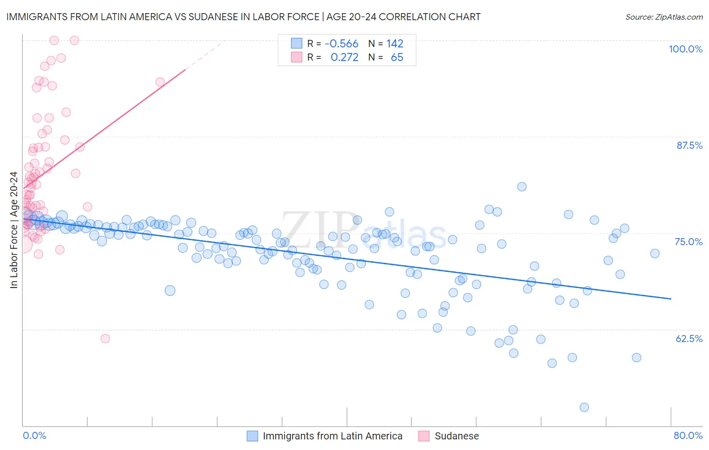 Immigrants from Latin America vs Sudanese In Labor Force | Age 20-24 Correlation Chart