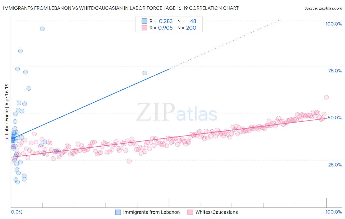 Immigrants from Lebanon vs White/Caucasian In Labor Force | Age 16-19 Correlation Chart