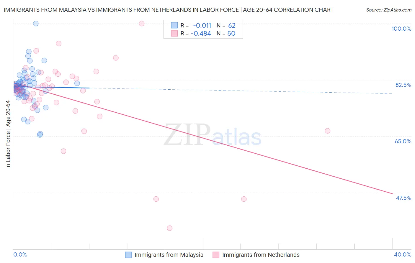 Immigrants from Malaysia vs Immigrants from Netherlands In Labor Force | Age 20-64 Correlation Chart