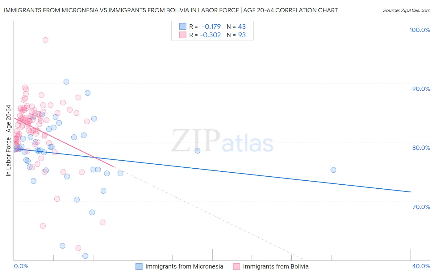 Immigrants from Micronesia vs Immigrants from Bolivia In Labor Force | Age 20-64 Correlation Chart