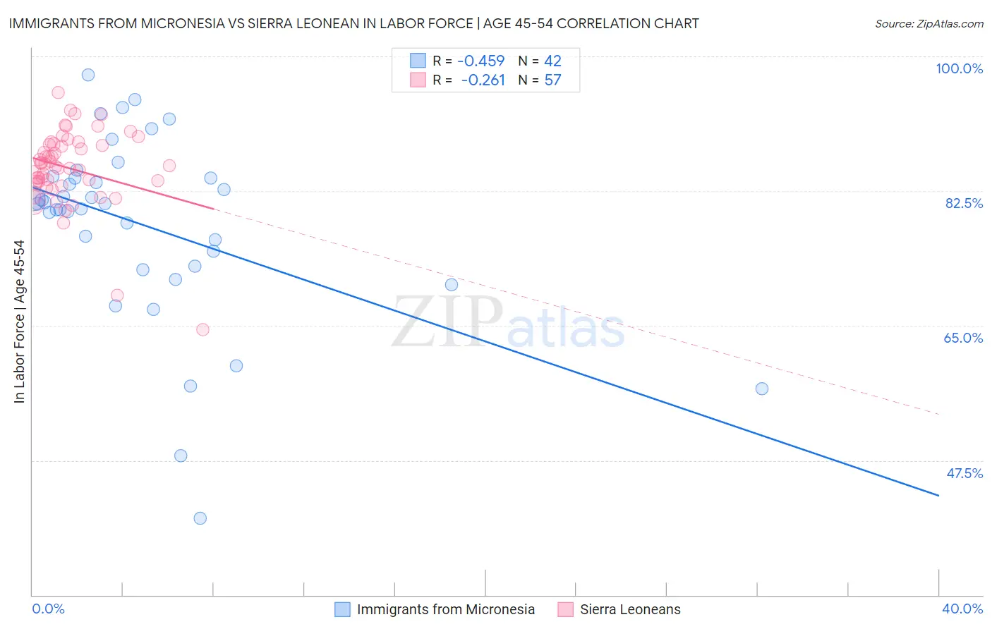 Immigrants from Micronesia vs Sierra Leonean In Labor Force | Age 45-54 Correlation Chart